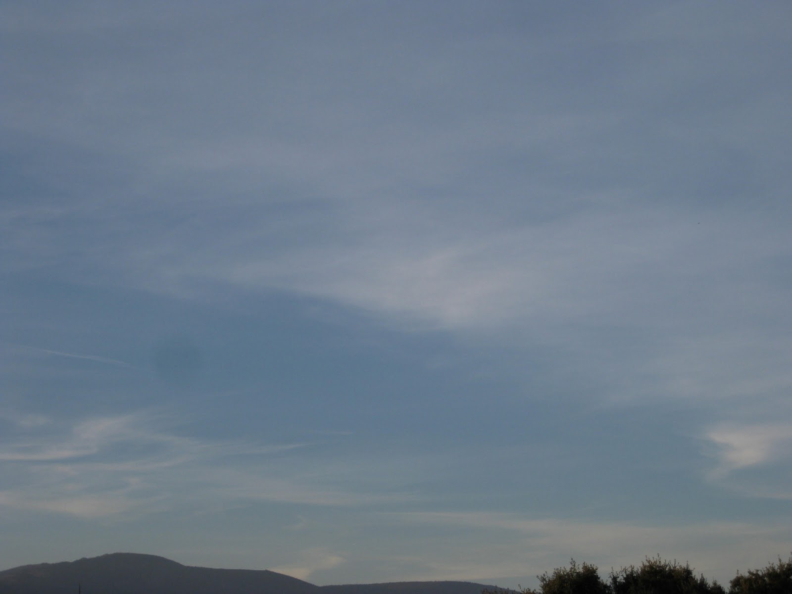 Bueno, voy a poner las fotos de la evolución de las estelas y las nubes durante el día de hoy. Hasta por la tarde, a eso de las 16:30 o así no se ha hecho el cielo casi transparente, y aún así permanecían cortinas de nieblilla en el cielo todavía. Por la noche se ven las estrellas, pero todavía quedan nieblecilla en el cielo.